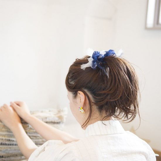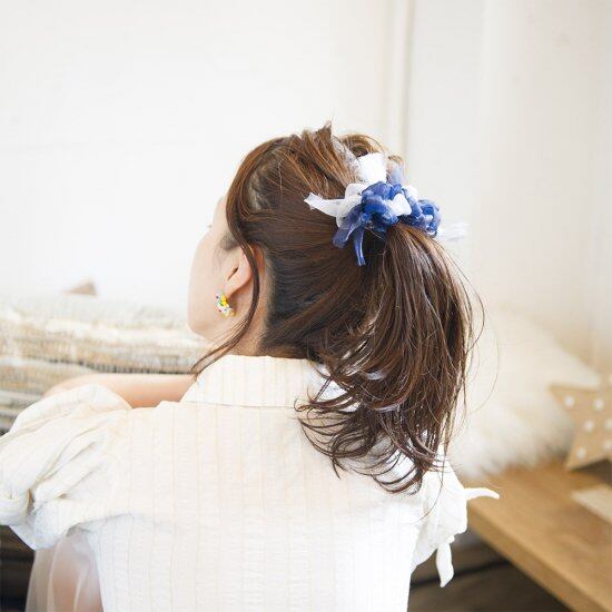 全方位的にボリュームが欲しい方、よりニュアンスが欲しい方には咲き編みシュシュをおすすめ!