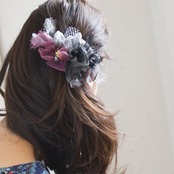 全方位的にボリュームが欲しい方、よりニュアンスが欲しい方には咲き編みシュシュをおすすめ!