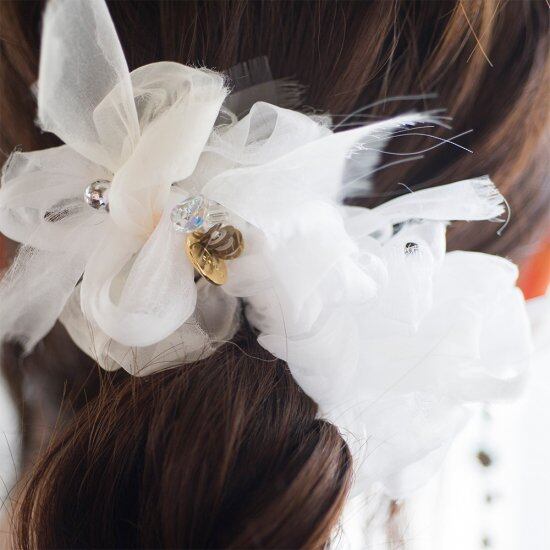 オーガンジーはいつまでも変色せずに使っていただけます。 しっかり編み込んでいるから電車でもまれても、ポーチに入れておいてもへたったりほどけたりしません! 生憎のお天気で濡れてしまっても、ふわふわはそのままです。 どうぞ安心してお出かけくださいませ! 咲き編み商品お取り扱いの注意