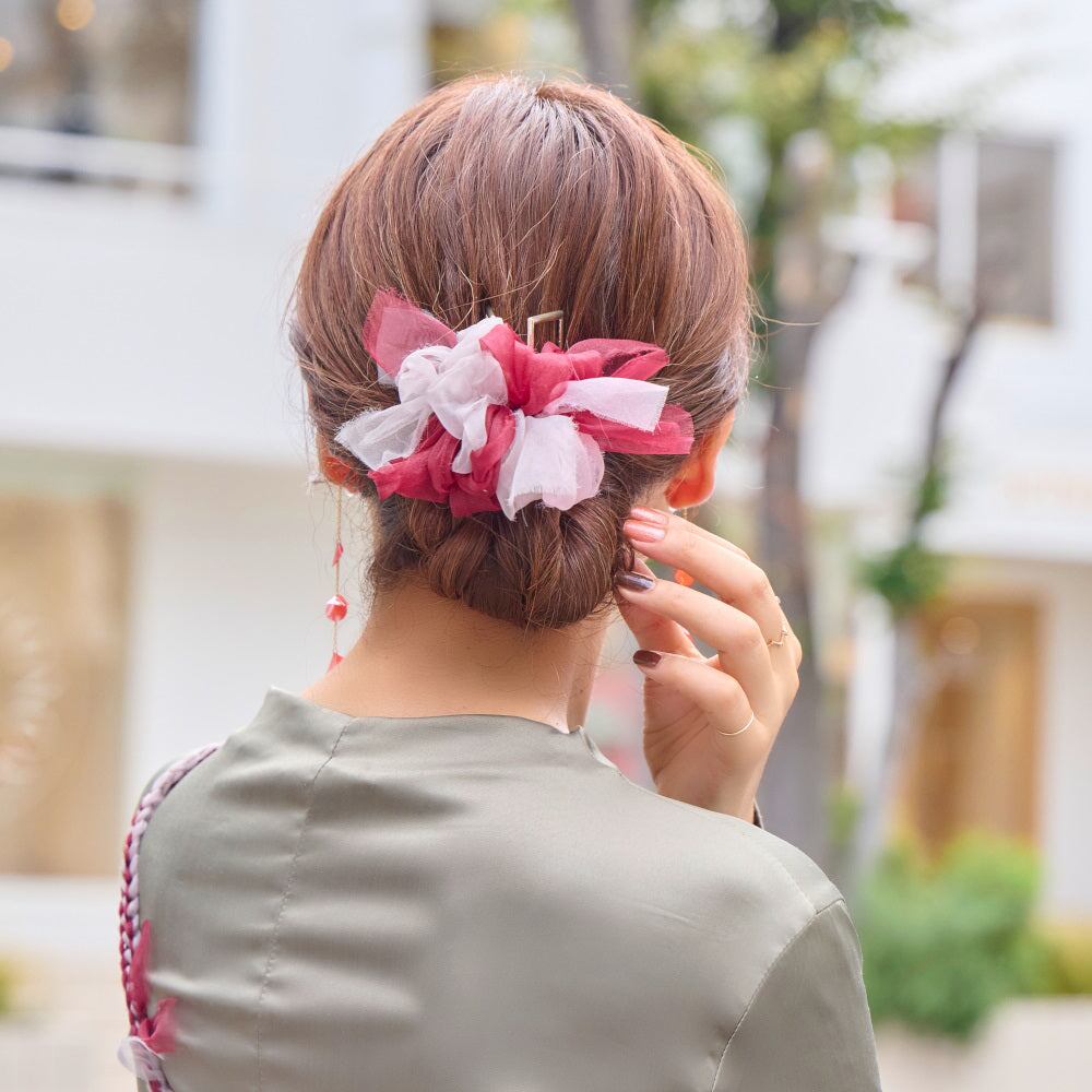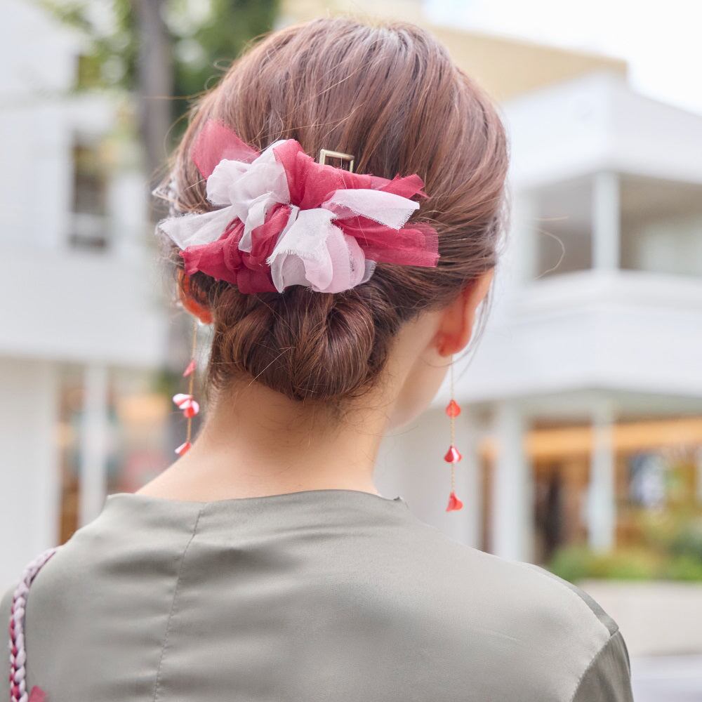 さっぱりまとめ髪をパパっと彩る咲き編みバンスクリップです。