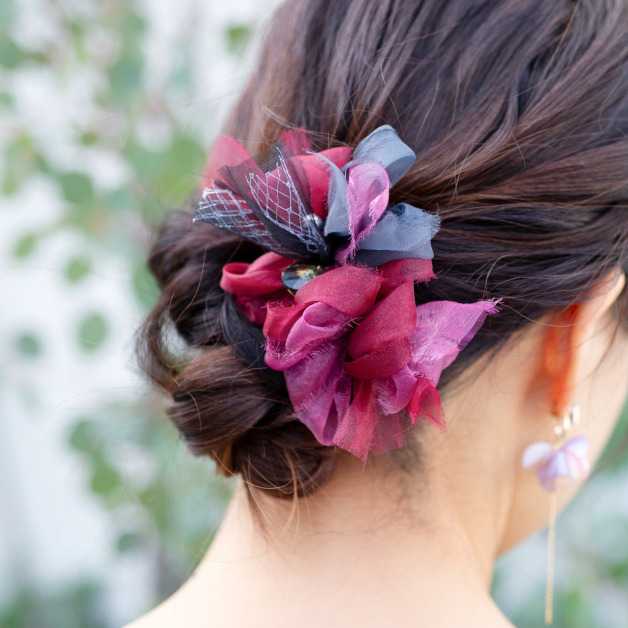【party】mini | ルージュ | 彩る咲き編みバレッタ/ヘアクリップ