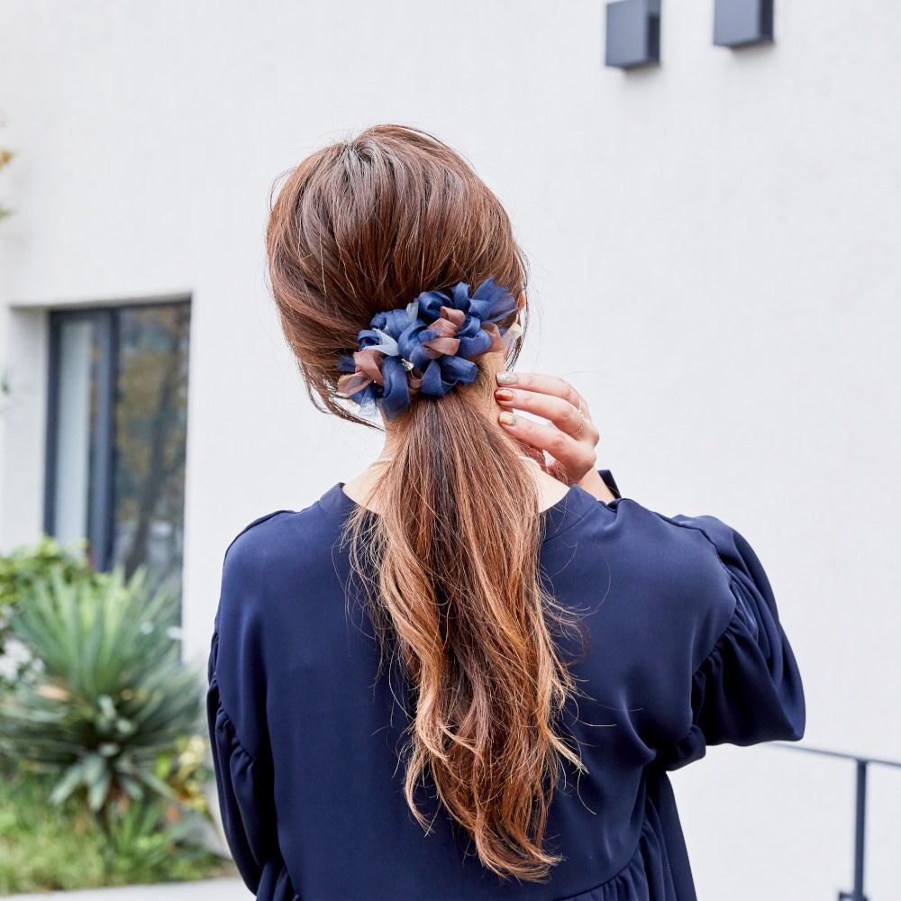 全方位的にボリュームが欲しい方、よりニュアンスが欲しい方には咲き編みシュシュをおすすめ!