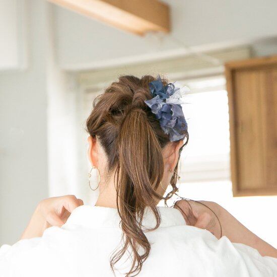 全方位的にボリュームが欲しい方、よりニュアンスが欲しい方には咲き編みシュシュをおすすめ!